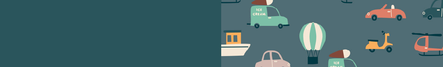 Make an extraordinary escape with your day-tripping dinky in this carousel of cute. Weave road-trip tales of continental cars zooming beneath curvy copters and magical mopeds on your tail. Float away with this ice-cream dream of a travel design.