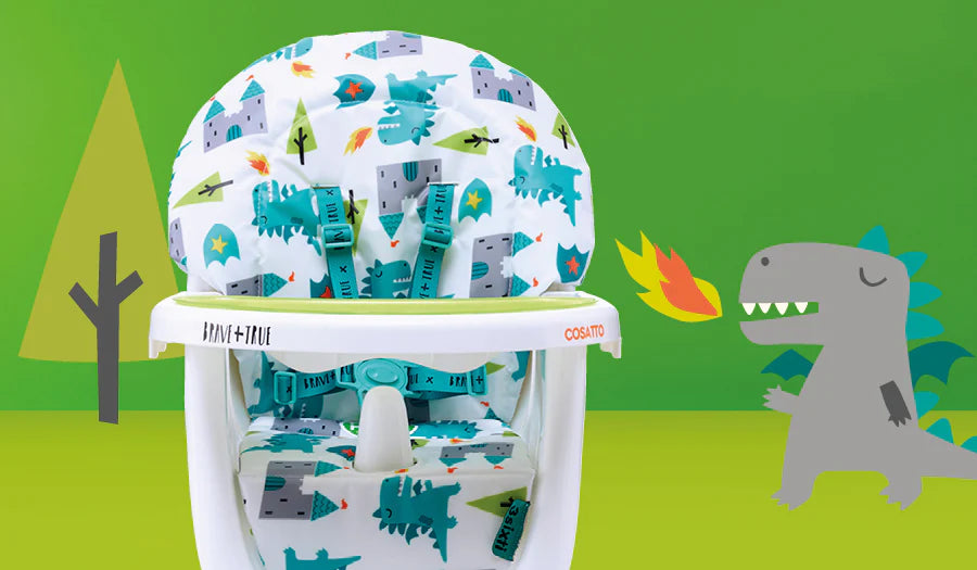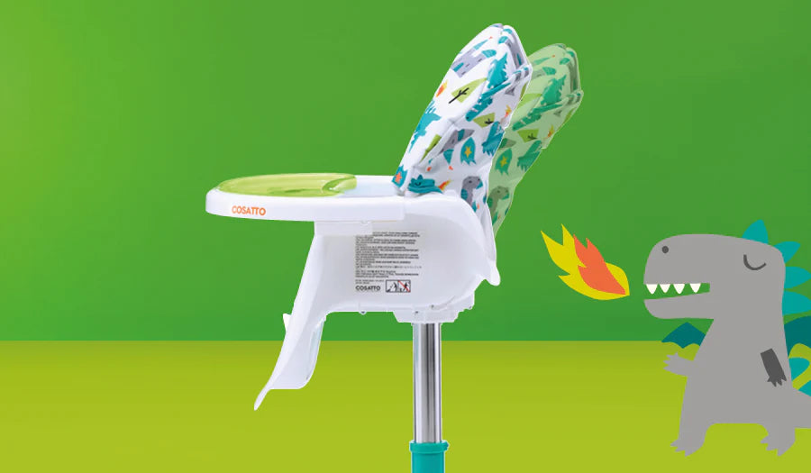 Up, Down, Turn Around – Dine high or low with the multiple-height smooth gas lift. Take an all-angles approach with the 6 position swivel. These features minimise stretching and bending for you when mini-mouths are on the move. With a 3 position seat recline for after-dinner chill and adjustable 2 part tray for mid-dinner spill, 3sixti2 makes weaning a breeze.