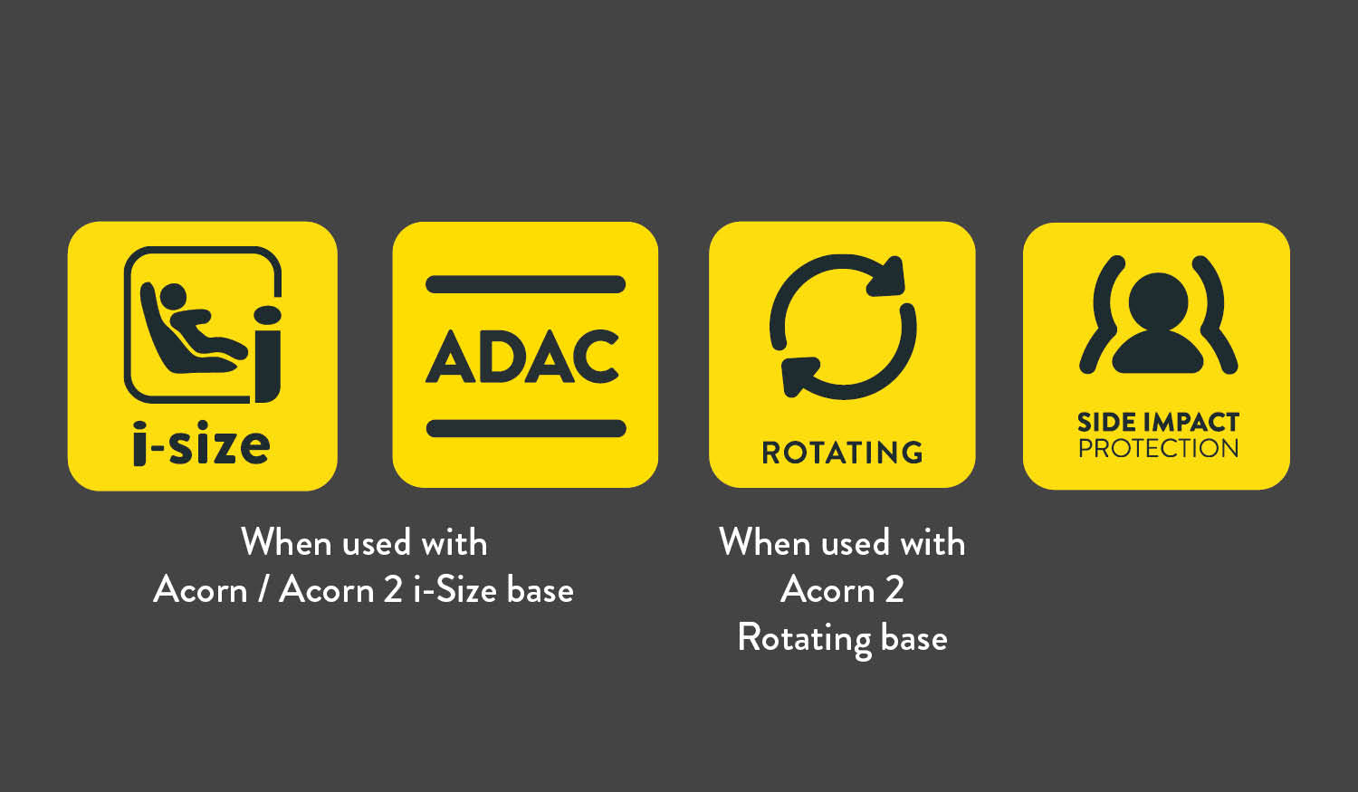 - Rotates when used on our Acorn 2 i-Size Rotating Car Seat Base (sold separately)
