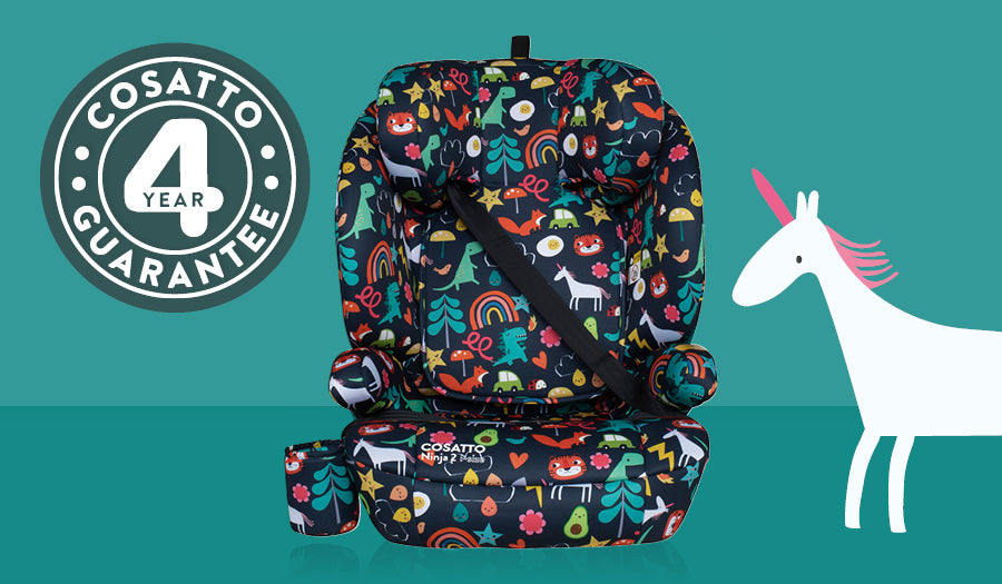 Ninja 2 i-Size car seat is crafted with Cosatto’s famous storytelling pattern that kids love and comes with an industry-leading 4 year guarantee for your peace of mind.