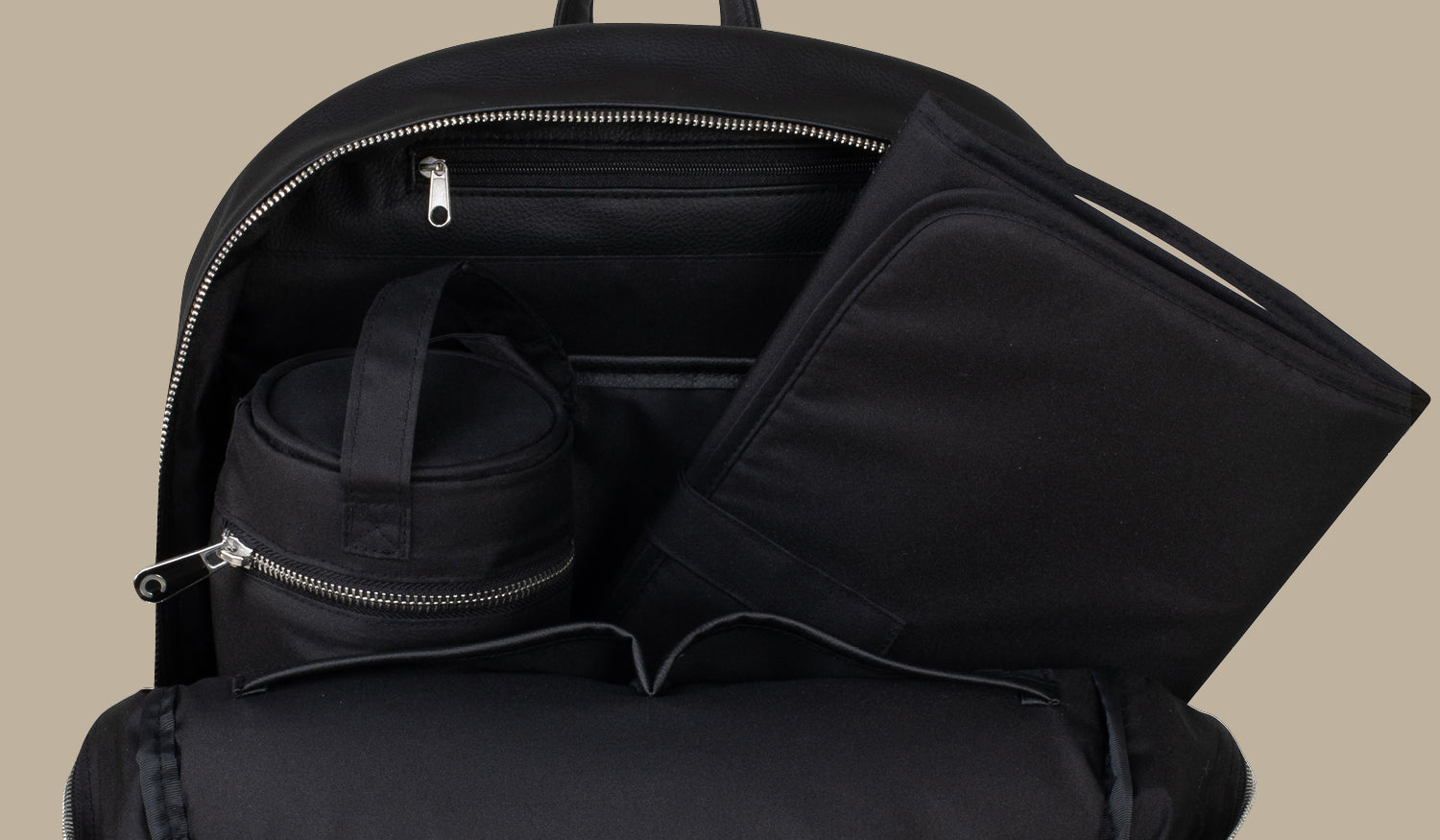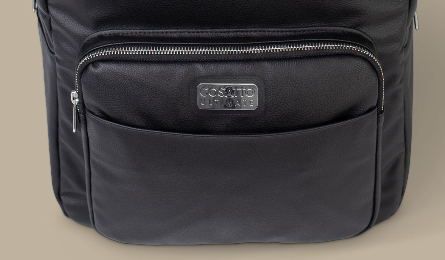 - Luxury soft, water-repellent leatherette backpack with wipe-clean changing mat and padded internal laptop pocket. In true Cosatto style, this bag wants to make your life easier.