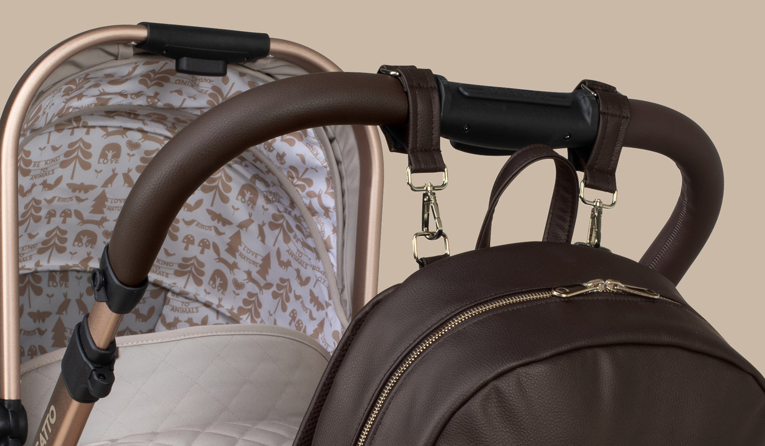 - Co-ordinating with your pram, detachable straps allow the bag to hang stylishly from the pram handlebar, so you can take along all your gear, for all your ideas.