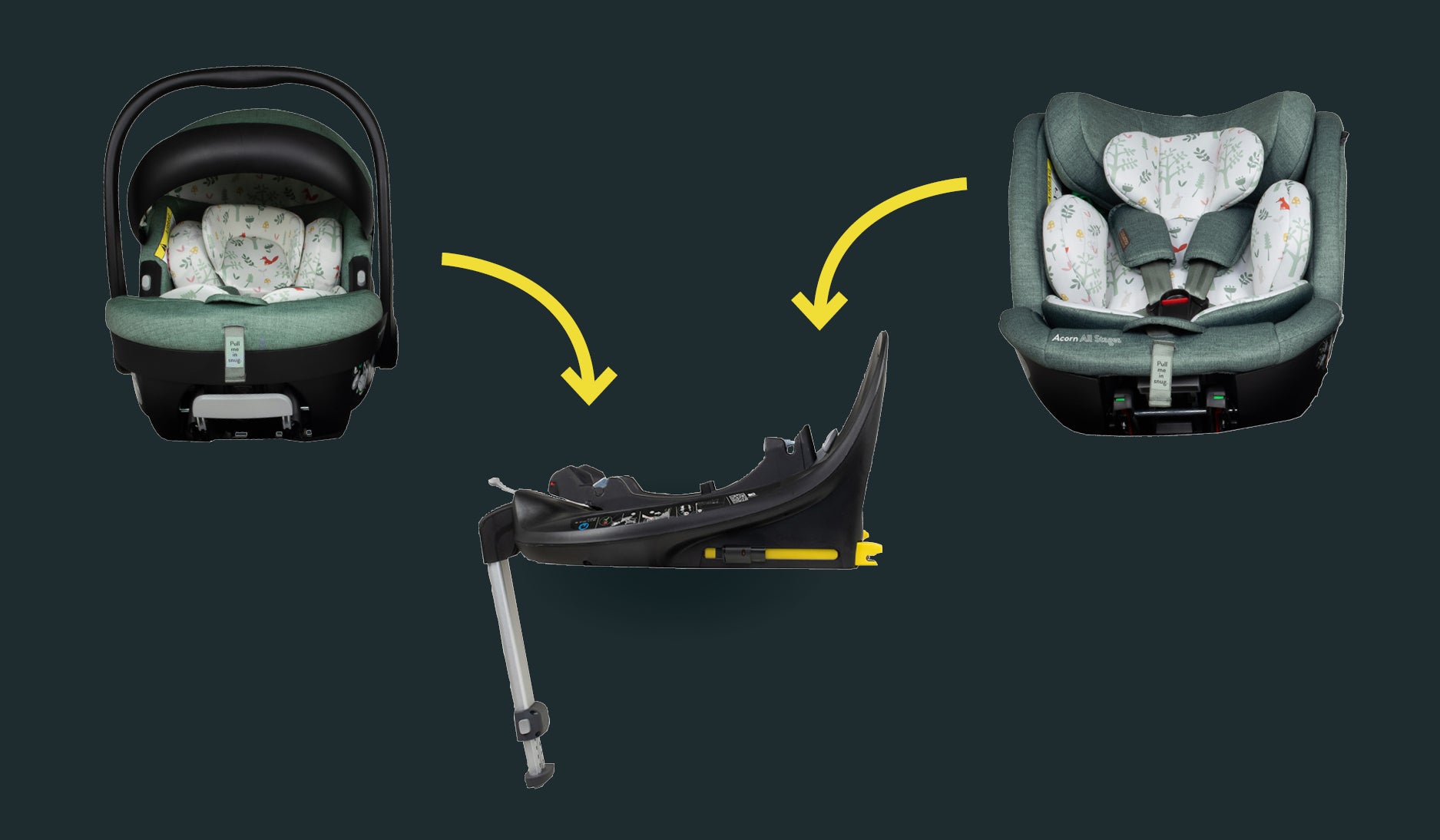 - Suitable belted and ISOFIX (Acorn 2 Rotating Family Base)