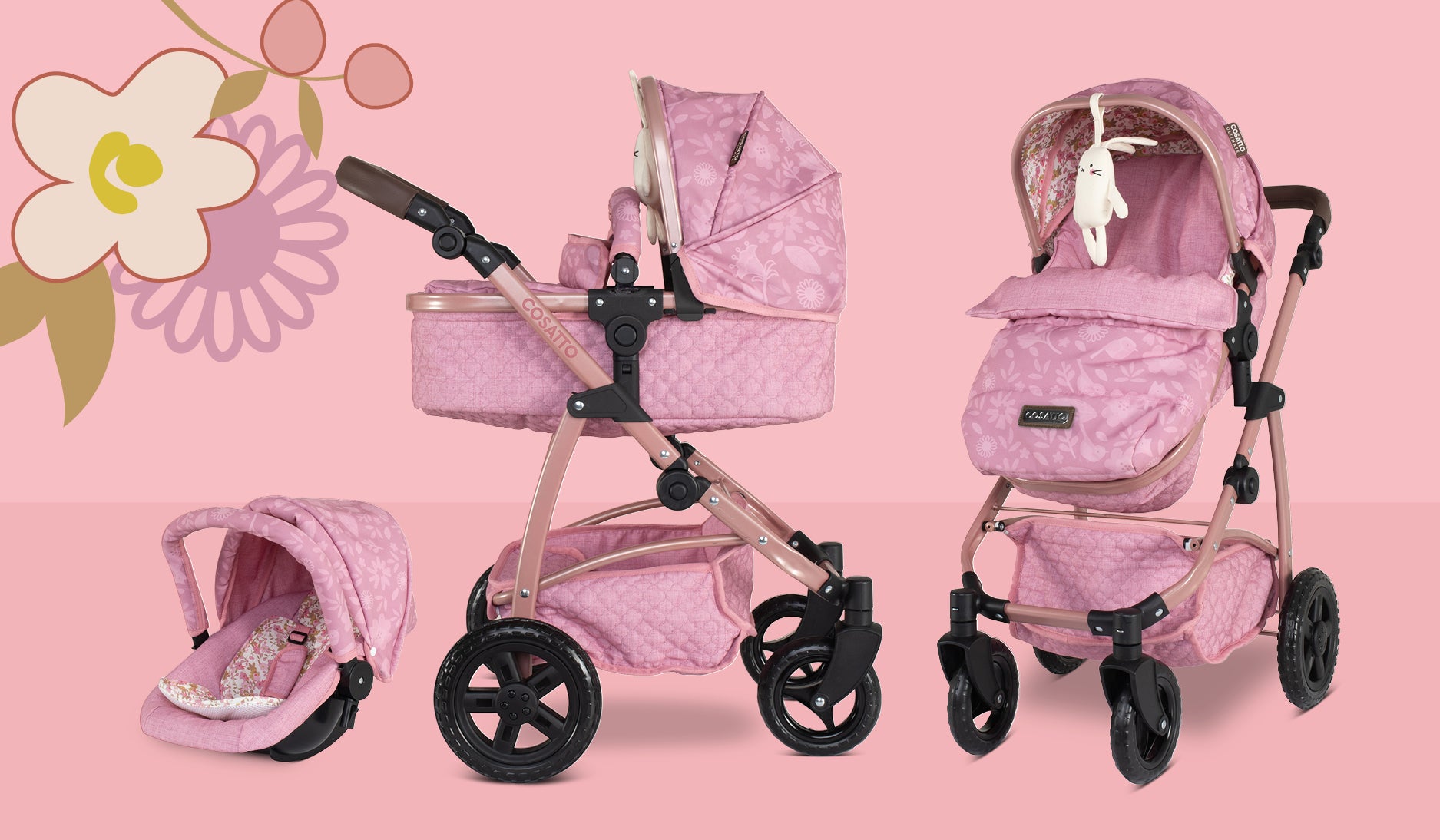 Cosatto Wow 3 in 1 Dolls Pram Travel System Bundle is a miniature version of the iconic Wow Travel System, with all the exquisite craftsmanship you’ve come to expect from the grown-up version. It’s specially designed for children aged 3 and up and features a fully adjustable handle (up to 78cm), to grow with your child for long-term adventures.