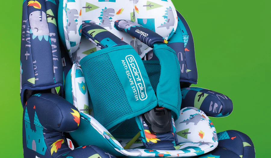 Cosatto Zoomi car seat has a five-point safety harness with quick release buckle for home time. With layers of padding plus tummy pad, chest pads and comfy padded arm rests, this toughie's a softie too.